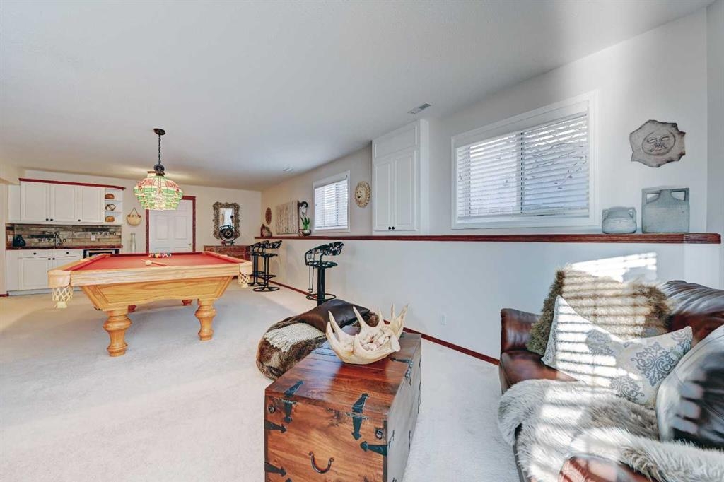 Exceptionally maintained and upgraded one-owner home offering nearly 2,500 sq. ft. of developed, functional living space. Pride of ownership is evident the moment you walk up to the front door with the exposed aggregate walks and professional landscaping. The layout of the home is very inviting with three spacious bedrooms on the main floor including a primary with four-piece ensuite bathroom. There is a bright and comfortable living room, a large dining room for entertaining and an upgraded kitchen with stainless appliances, lots of cabinets and quartz counter tops. From the kitchen you can step out to the beautiful deck that has frosted glass for privacy and a glamorous spiral staircase leading to the backyard. This is a fantastic space that makes you feel like you are amongst the trees and is everyone's favorite spot for entertaining or lounging. The lower level of the home is a bright and sunny walk out and is finished to the same quality as the main level. There is a large entertainment area with an included pool table with accessories, a wet bar with live edge counter and custom tile backsplash and a cozy sitting area with a gas fireplace. The perfect area to relax while watching TV. The lower level also has another bedroom, great for older children or guests, an upgraded three-piece bathroom, a nice laundry room and a huge storage room. This home is situated in the highly desirable community of Signal hill, known for excellent schools, nearby playgrounds, parks, and extensive walking and biking paths. Enjoy mountain views and the convenience of being within walking distance to the Westhill shopping center, steps to transit, with easy access to downtown and the ring road to get west to the mountains quickly. The beautifully landscaped and private yard features mature trees, stunning perennial gardens, concrete edging, and a custom storage shed that matches the exterior of the home. This is an excellent property. Call today for your private viewing!